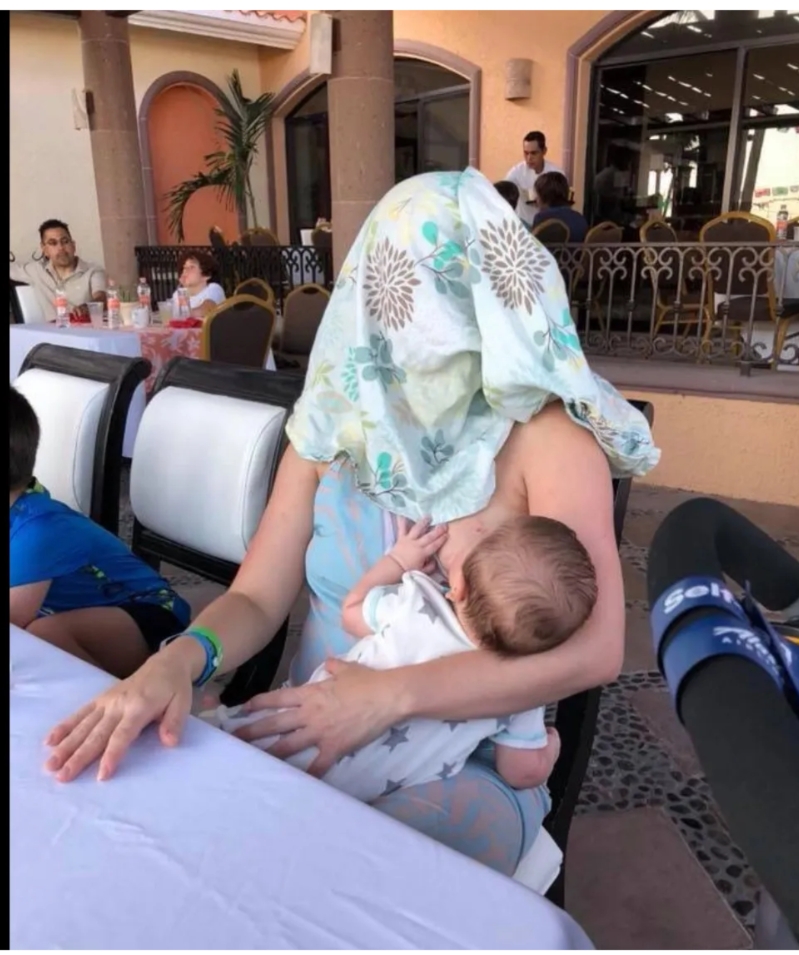 Instead of hiding, turning away, or apologizing, the mother looked calm and completely present with her child. No attempt to stage the moment. No attempt to provoke. Just feeding her baby as humans have done for thousands of years.