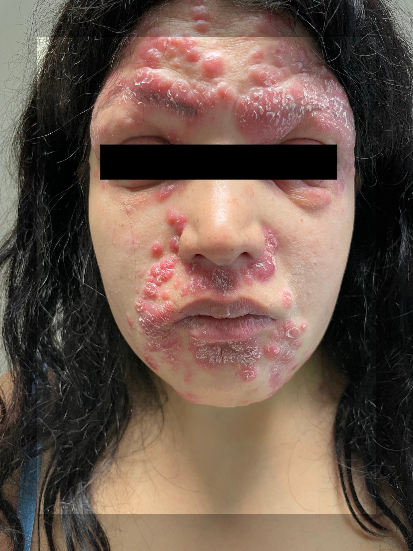 Cutaneous lesions are the most striking feature. Patients develop multiple painful papules or nodules that rapidly ulcerate, forming deep necrotic ulcers covered with thick, dark crusts. These lesions may resemble vasculitis, deep fungal infections, pyoderma gangrenosum, or even cutaneous lymphoma, which frequently leads to misdiagnosis.