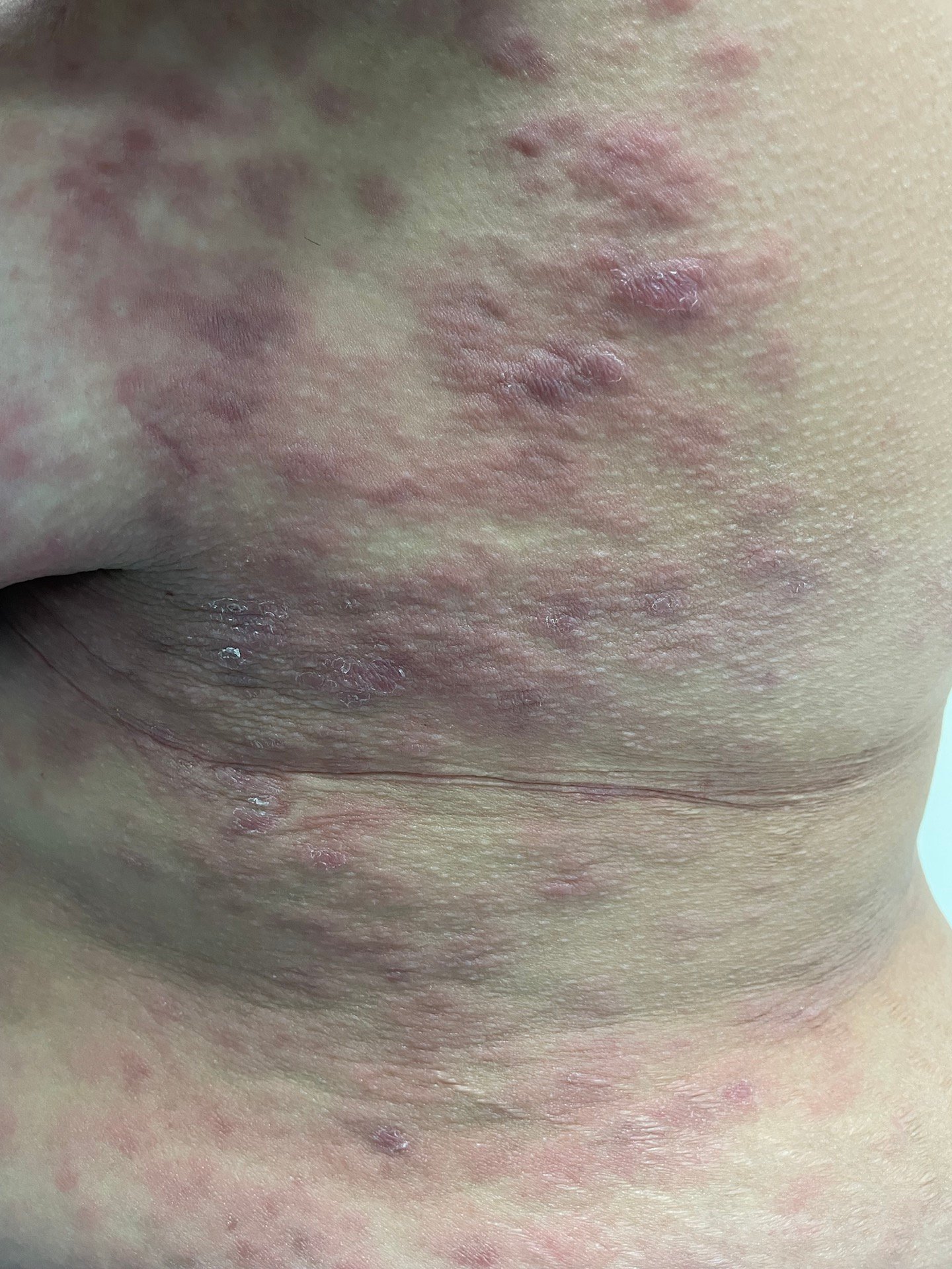 Skin biopsy often reveals dense dermal inflammatory infiltrates rich in plasma cells, endothelial swelling, and necrosis. Spirochetes may be scarce on special stains, which can complicate confirmation. Importantly, HIV testing is essential, even when patients appear immunocompetent, due to the strong association.