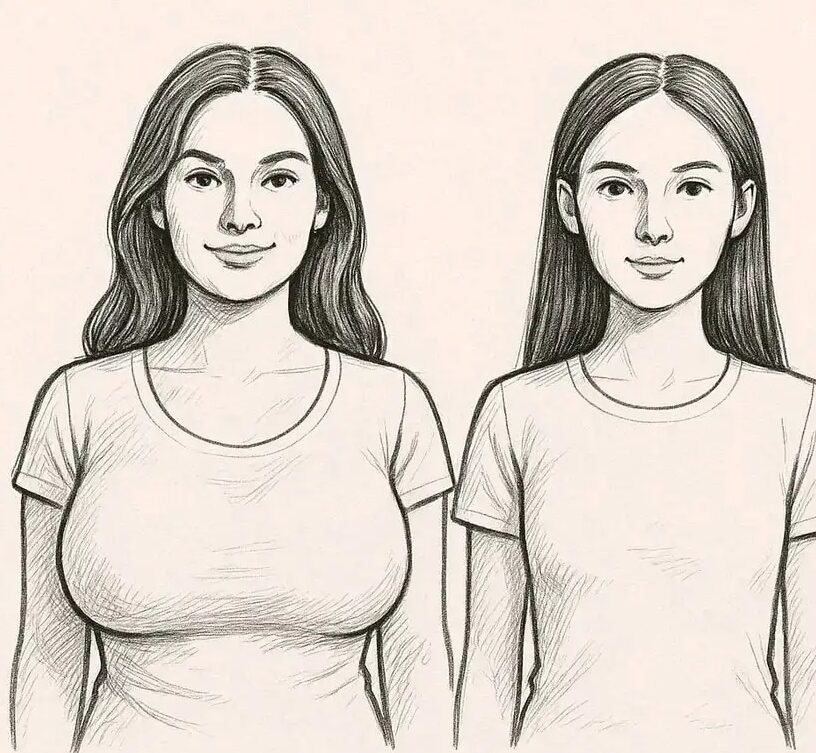 Breast size is primarily influenced by genetics, hormones, age, weight changes, pregnancy, and overall body composition. Medical research does not connect breast size with intelligence, emotional strength, loyalty, confidence, or relationship preferences. Two women with similar body types can have completely different personalities, values, and life experiences. Likewise, people with very different physical features may share the same emotional depth and relationship goals.